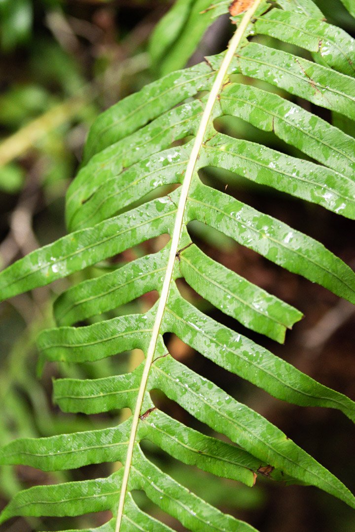 This trail follows a stream into a humid forest beneath tall ferns and moss covered trees, leading to a small waterfall at the end. It’s an easy hike when dry, but becomes more challenging after rain, with slippery and muddy terrain (beware of the leeches when wet).