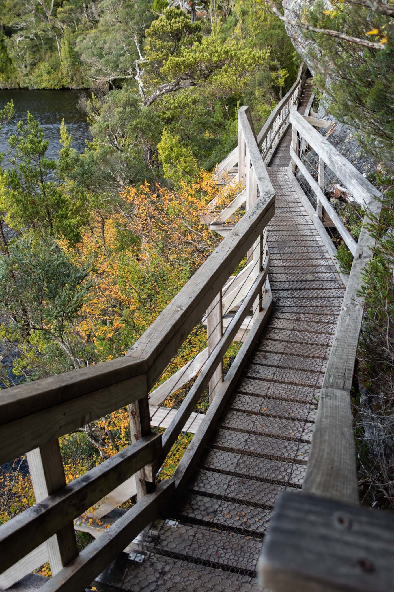 A very short walk through rainforest, vith views of pencil pines falls from above. You can visit the Interpretation Centre there to learn more about the history, ecosystems and wildlife of the park.